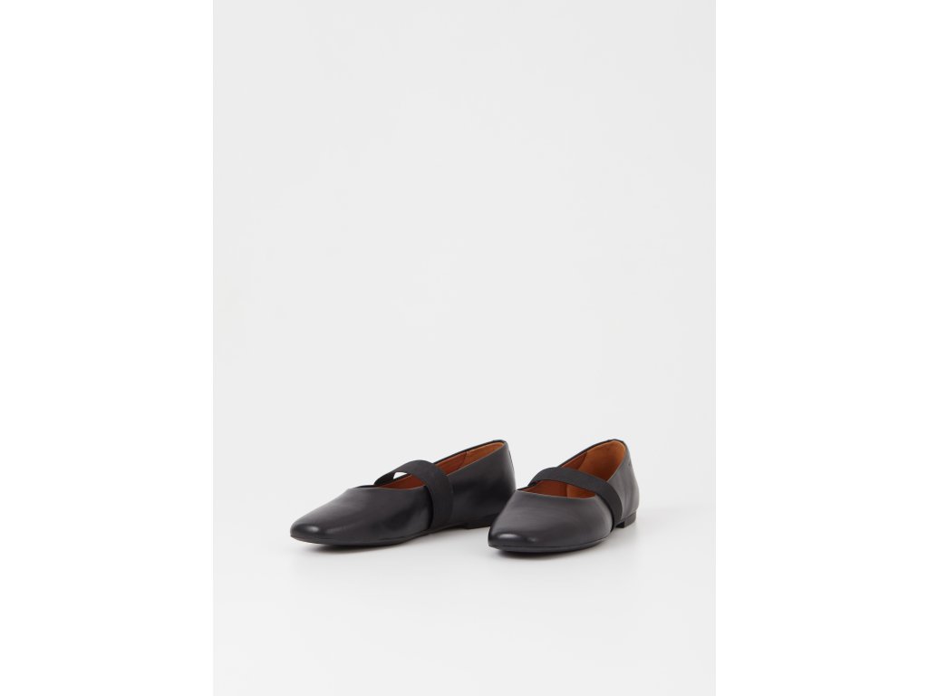 Vhodné pro každodenní nošení. Tento model je vyroben z černé kůže, má zaoblené špičky a gumový pásek přes nárt . Nízké podpatky měří 11 mm.
